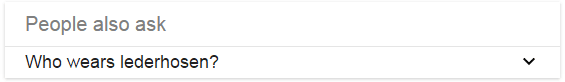 Currently, Related Questions can occur in packs of between 1–4 questions and answers. Here’s an example of a box with only one question, on a search for “lederhosen”: