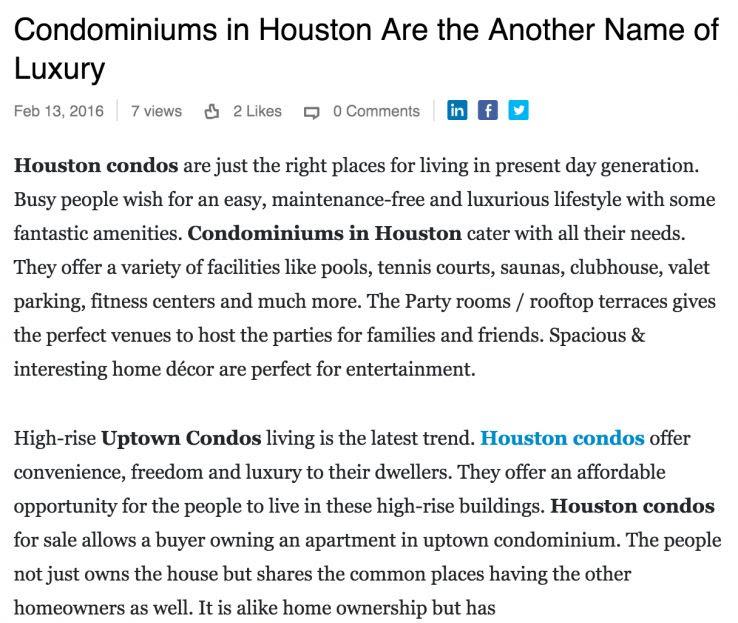 I get e-mails all the time from people offering “guest posts” or selling “guest post services” — and I know exactly what they have in mind. Almost every time, people who use the word “guest post” end up submitting 500 words of crap with a few links that have optimized anchor text. Don’t be those people — their jobs consist of nothing but filling the Internet with spam.