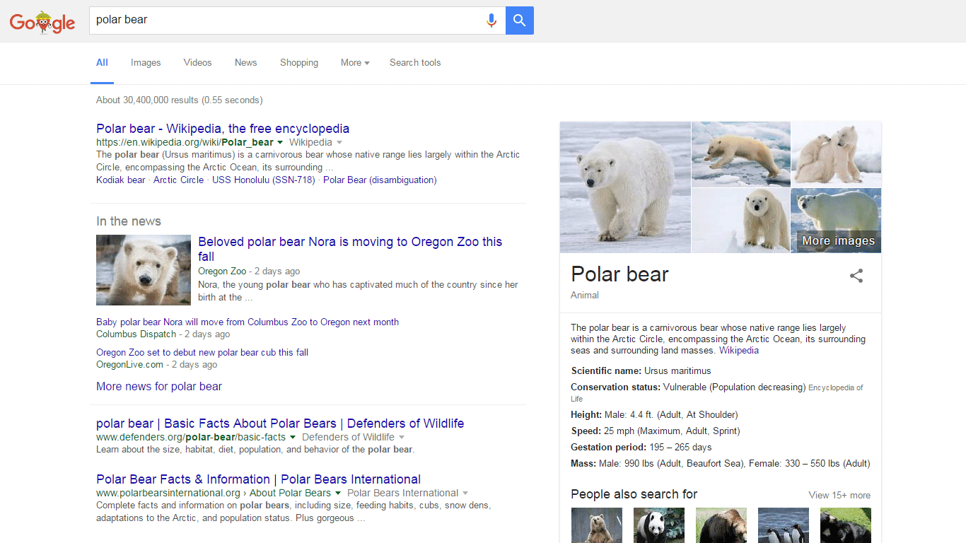 Here’s a SERP screenshot for “polar bear” in Google’s current desktop design: