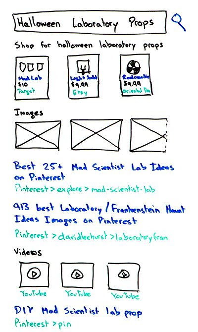 So, up at the top, Google is showing us ads. They are showing us the shopping ads, shop for Halloween laboratory props, and they’ve got some chemistry sets and a Frankenstein-style light switch that you can buy and some radioactive props and that kind of thing from Target, Etsy, and Oriental Trading Company.